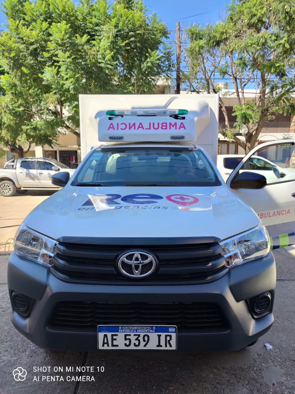 Re Emergencias sumó una nueva Unidad Sanitaria de última generación. Se trata de una camioneta Toyota Hillux 4 x 4, 0 km., con una Unidad de Terapia Intensiva montada sobre la caja. Se trata de las denominadas ambulancias Tipo 3.
