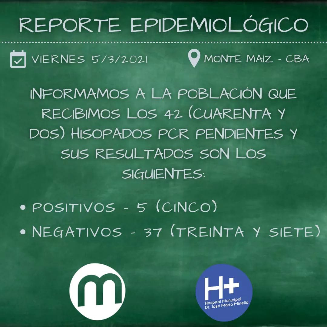 5 CASOS NUEVOS EN MONTE MAÍZ: HAY 26 CASOS ACTIVOS