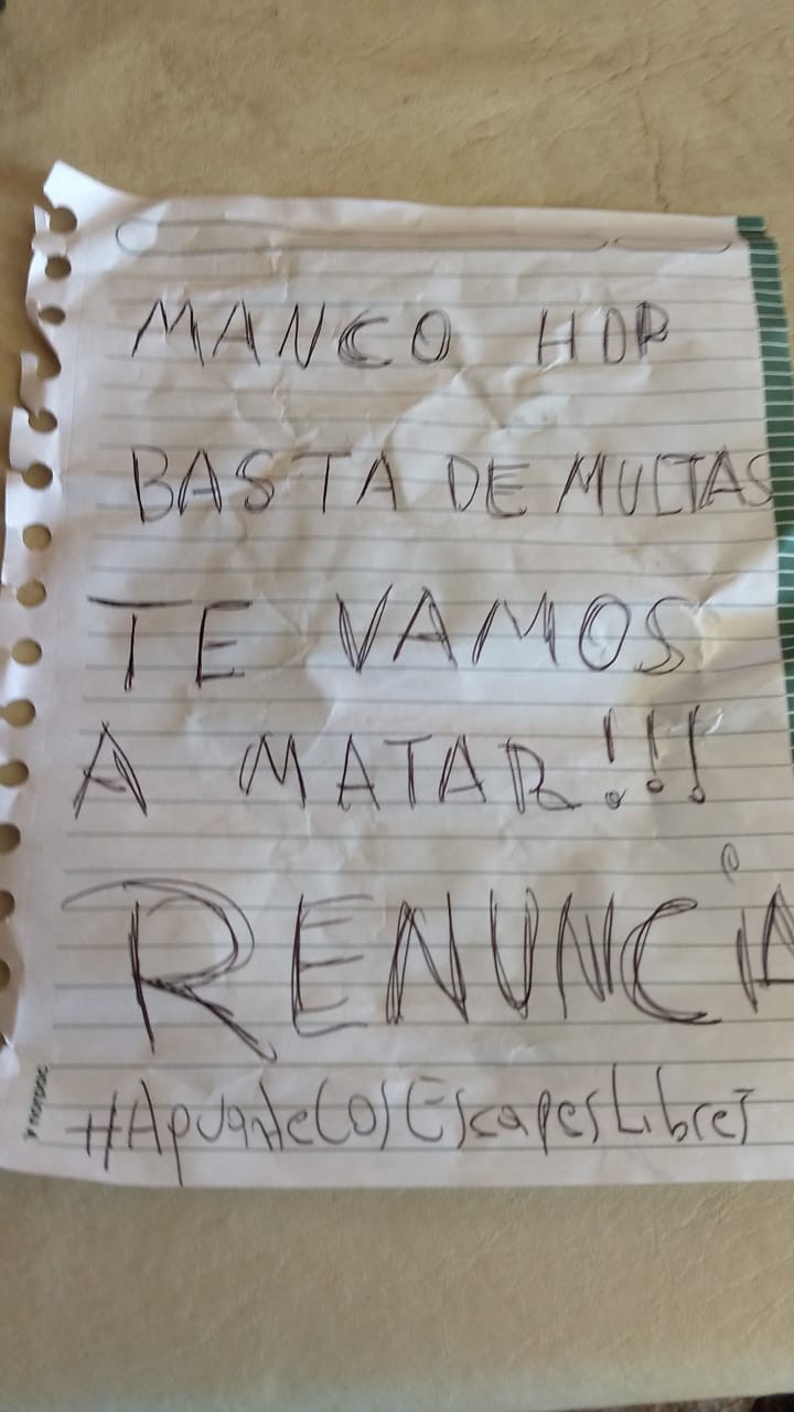 En las últimas horas, inspectores municipales sufrieron amenazas de muerte en sus domicilios con destrozos en su propiedad, recibiendo mensajes intimidantes para que no se realicen controles de tránsito por los caños de escape libre de las motos.