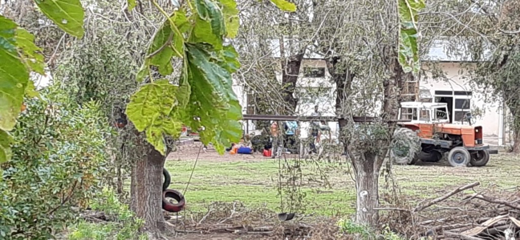MIENTRAS TRABAJABA CORTANDO GAJOS DE ÁRBOLES DAÑADOS POR EL TORNADO EN LA ESCUELA LUIS DE TEJEDA