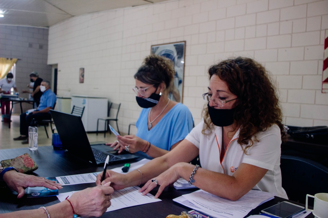 En la tarde del jueves se montó un dispositivo de vacunación anti Covid en el SUM (Salón de Usos Múltiples) de calle Salta y esquina Chaco de B° Monterrey. Allí se vacunaron 97 adultos mayores de 70 años a los que se les aplicó la primera dosis de la Sputnik V.