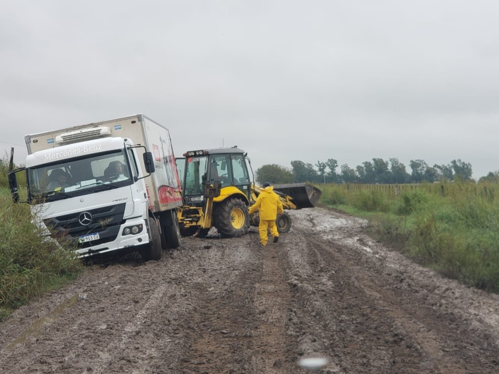 Datos aportados por personal de empresas que están a la vera de ruta provincial N° 11 informaron que varios vehículos quedaron empantanados debido a la gran cantidad de barro y agua acumulada por la lluvia de las últimas horas.