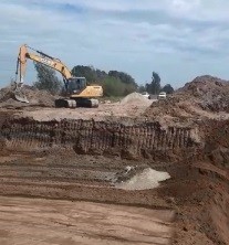 El canal maestro ya está reconectado a la alcantarilla nueva y se contrató una retroexcavadora –por parte del Consorcio Canalero- para poder limpiar el sedimento que tiene el canal entre la alcantarilla nueva, la entrada al Complejo Ecológico y un buen tramo hasta antes de llegar al lugar conocido como “la planta”. Allí hay entre 1 m. y 1,20 ms. de sedimento y su limpieza o remoción permitirá mayor fluidez del agua. Ese sedimento hace que la base del canal se eleve y no permita correr el agua con normalidad. Esta pudo haber sido también una de las causas de la filtración o rotura de la vieja alcantarilla.