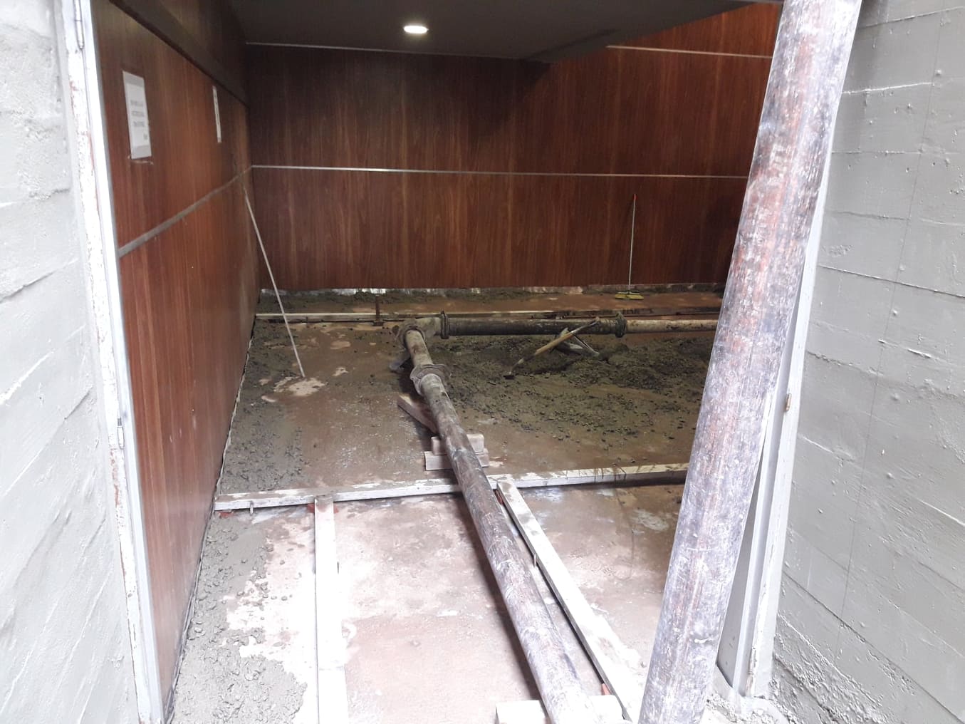 Por tal motivo se comenzó con trabajos en el techo y en las canaletas de evacuación de agua. En el día de ayer se procedió a remover el piso dañado por el agua y la humedad y se construyó una nueva carpeta.