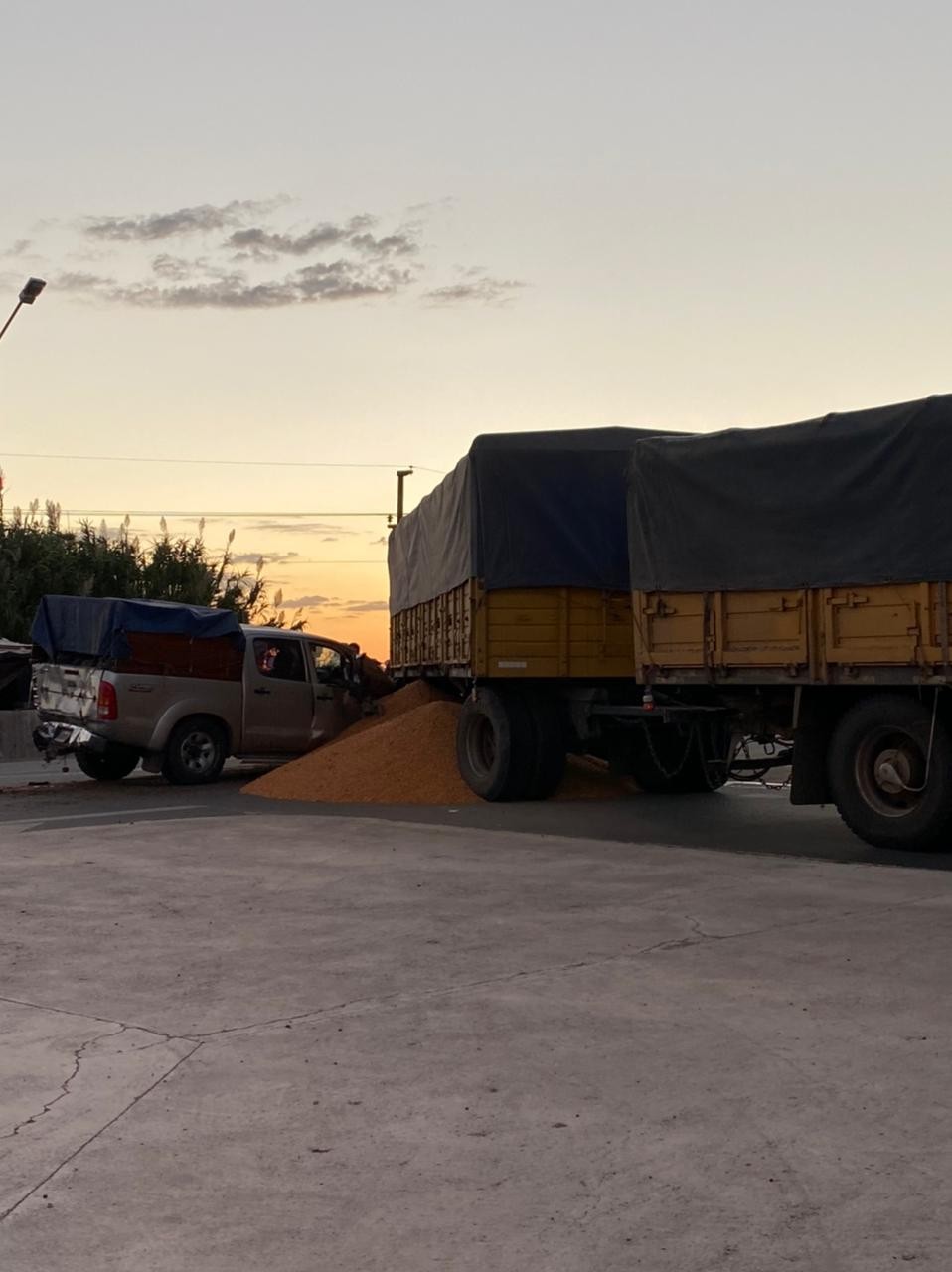 Al caer la tarde de hoy, colisionaron una camioneta Toyota Hilux y un cami�n con acoplado cargado con Ma�z.