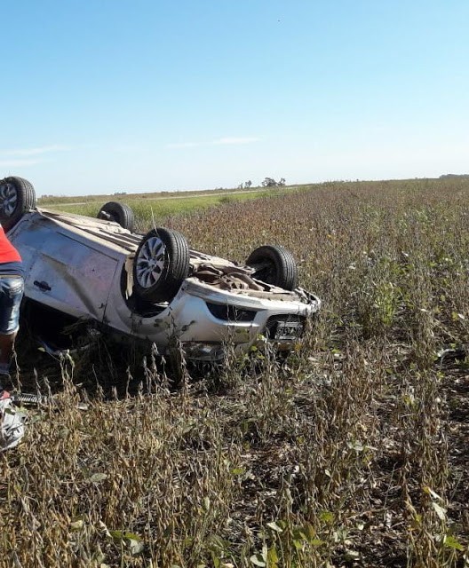En la mañana de este sábado, 09:30 hs. aproximadamente, se produjo un vuelco en solitario de un automóvil Chevrolet AVEO, Dominio LEV 539, de color gris, con 3 ocupantes, todos oriundos de Justiniano Posse que sufrieron algunas lesiones de distinta consideración.