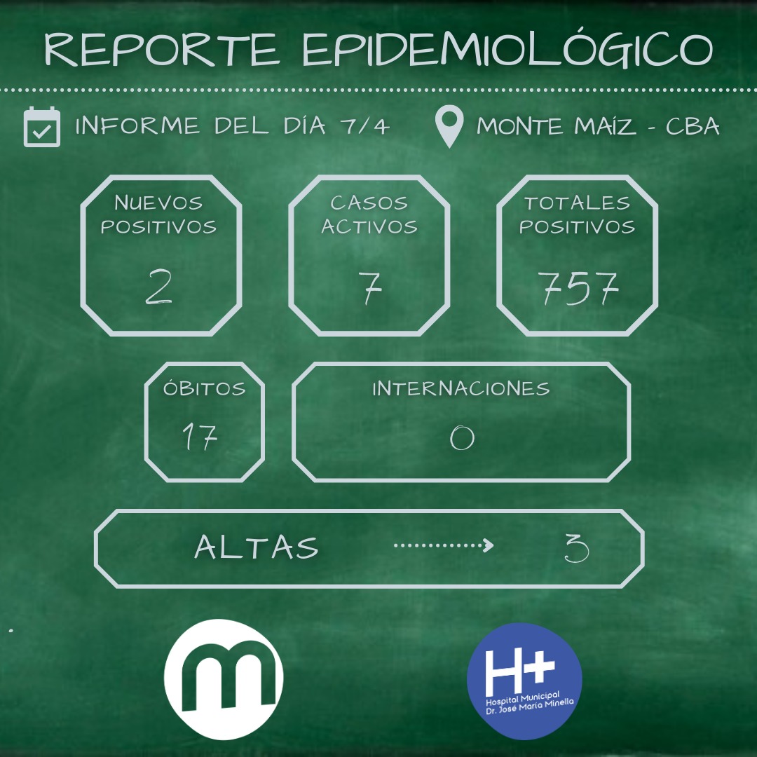 Desde el Hospital Municipal se informaron 2 casos nuevos de COVID-19 en Monte Maíz. Tres pacientes que cumplían aislamiento domiciliario fueron dados de alta en el día de ayer.