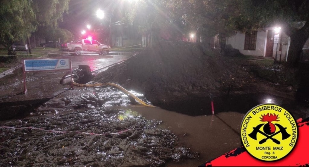 El jueves 8 de abril, Bomberos Voluntarios de Monte Maíz debieron acudir en auxilio de vecinos de B° Monterrey, calle Chaco al 1600, entre Salta y Jujuy, ya que el agua estaba ingresando en algunas viviendas.