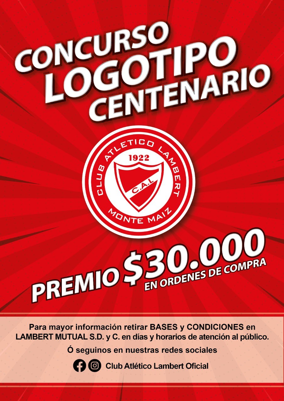 Se trata de algo muy simple y puede participar cualquier ciudadano de nuestra localidad sin importar de que Club es simpatizante. Las bases del concurso, que tiene un Premio de $30.000 en una Orden de Compra en Lambert Hogar, pueden encontrarse en las redes sociales del Club, Facebook y/o Instagram (Club Atlético Lambert Oficial), o en papel en Lambert Mutual. Allí también podrán encontrar una urna donde se puede depositar el proyecto utilizando solo un seudónimo. Podrán dejar un número de teléfono o un correo electrónico para ser contactados en caso de ser considerados como el mejor logo del Centenario.