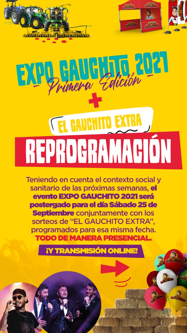 En la mañana del miércoles se informó la postergación del evento “Expo Gauchito 2021” para el sábado 25 de setiembre del corriente año. El mismo se iba a desarrollar los d+ías 1° y 2 de mayo pero debido al contexto de pandemia que se vive por estos días se decidió su postergación.