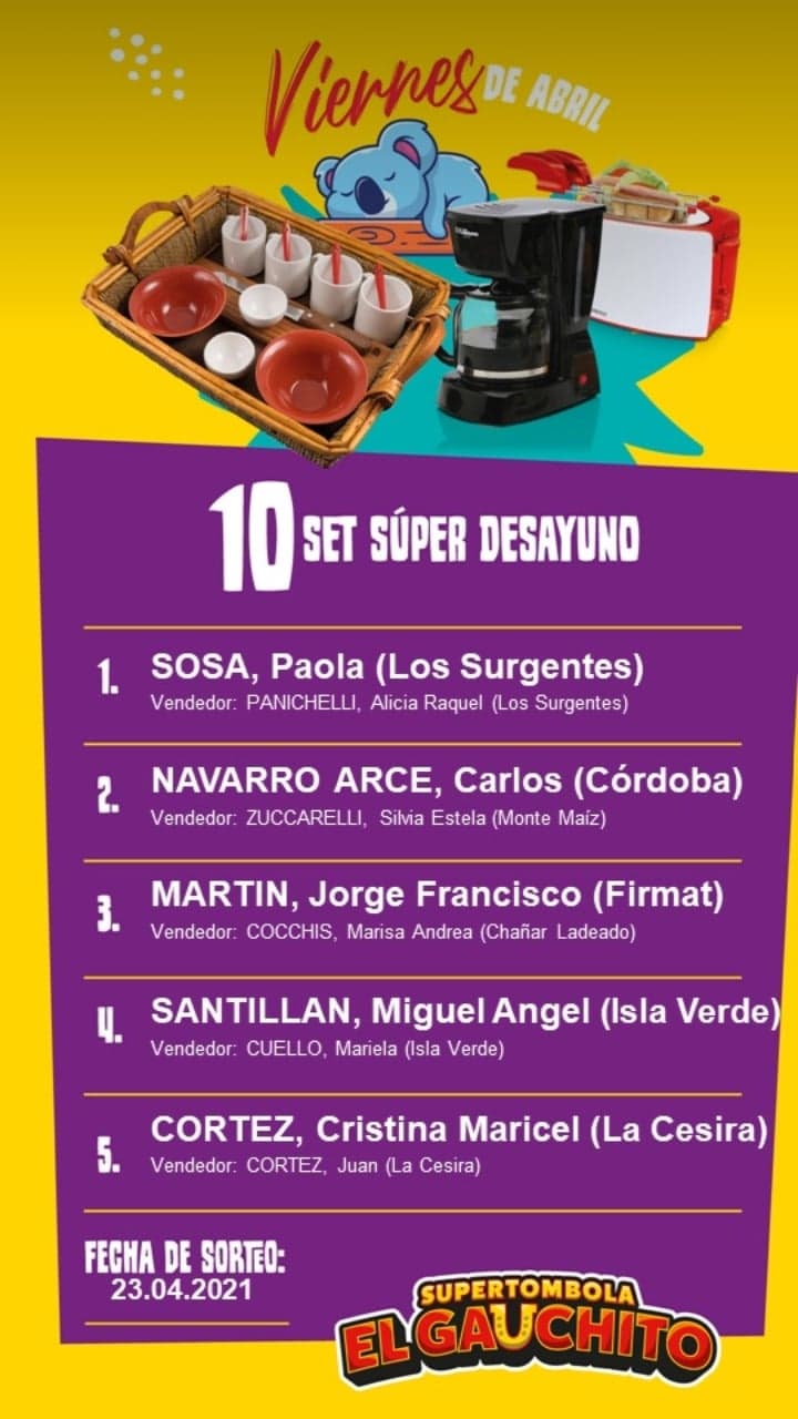 10 GANADORES DE SETS DE DESAYUNOS