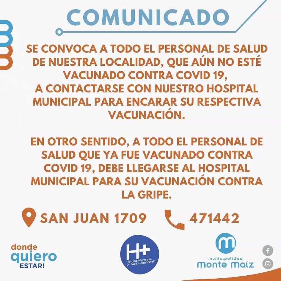 El Director del Hospital dijo que incluso la vacunación del calendario obligatorio muy posiblemente también se haga en el SUM ya que el último viernes hubo mucha gente en el Hospital que se llegó con sus niños para que se los vacune. La idea es tratar de bajar el nivel de concurrencia al Hospital por lo menos por unos días.