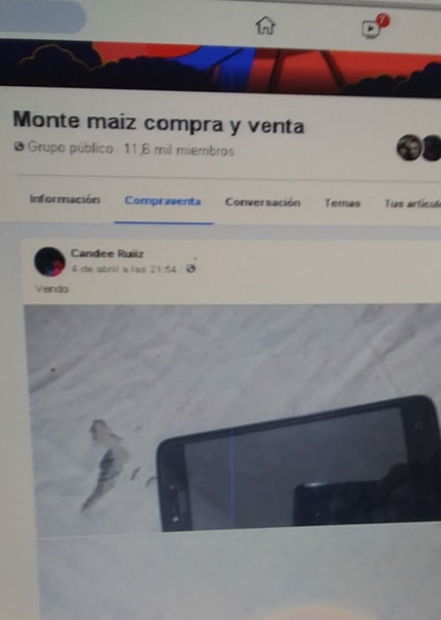 La mujer manifestó que al teléfono se lo adquirió a la joven Candela Ruiz, a principios de abril. El Motorola Moto C estaba publicado en el portal de Facebook Monte Maíz Compra y Venta.