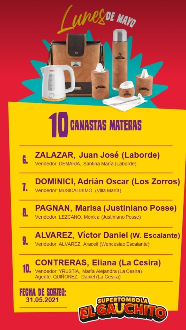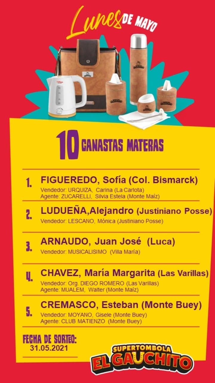 SORTEOS DE LUNES DE MAYO DE LA SÚPER TÓMBOLA EL GAUCHITO