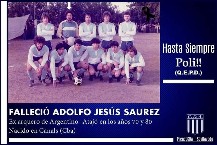 El Club Deportivo Argentino lamenta profundamente informar que ayer jueves 1 de junio falleció a la edad de 71 años Adolfo Jesús "Poli" Suarez.