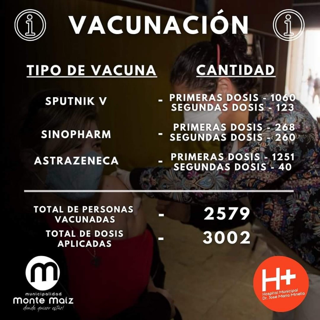 Tras el último dispositivo de vacunación, que se llevó a cabo el vieres en la casa de la Cultura, en Monte Maíz ya se aplicaron más de 3.000 dosis de vacunas contra el Covid-19. Hay 2.579 personas que tienen al menos una dosis de la vacuna.