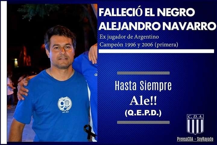 Lamentamos profundamente comunicar que en horas del mediodía de este lunes 7 de junio, falleció a la edad de 43 años Alejandro Navarro, ex jugador del Raya y papá de Agustín, jugador de categoría Sub-15.