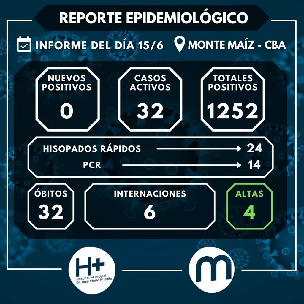 Desde el Hospital Municipal se informó que tras 24 hisopados rápidos realizados en el día de ayer, no ha habido resultados Positivos. También se hicieron 14 hisopados por PCR de los cuales se aguarda por los resultados. A 4 pacientes que se encontraban cumpliendo con el aislamiento domiciliario se les dio el alta médica.