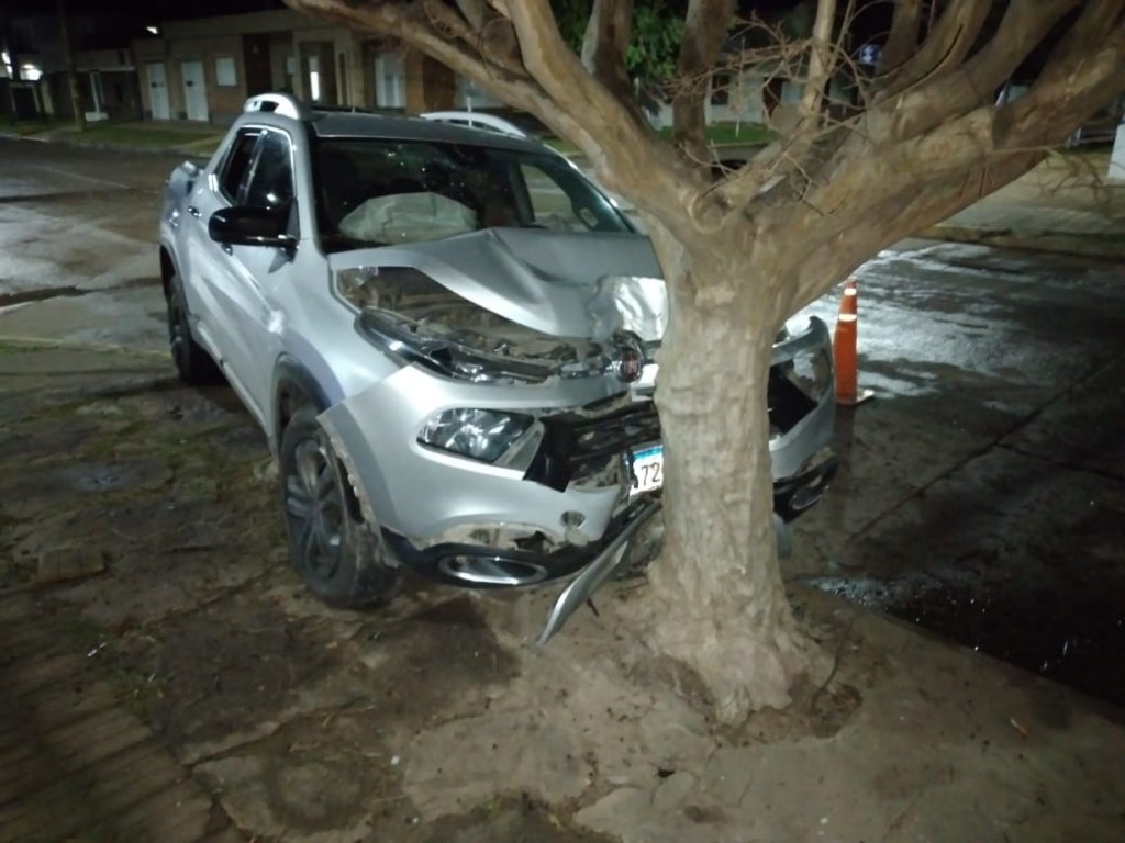 En el lugar, una camioneta, Fiata Toro, de color gris, conducida por Andrés Reggiardo (20), colisionó contra un árbol en la vereda oeste de calle Chubut.