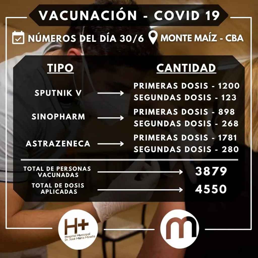 De estos datos se desprende que en nuestra localidad ya se han vacunado 3.879 personas y se aplicaron 4.550 dosis de vacunas.