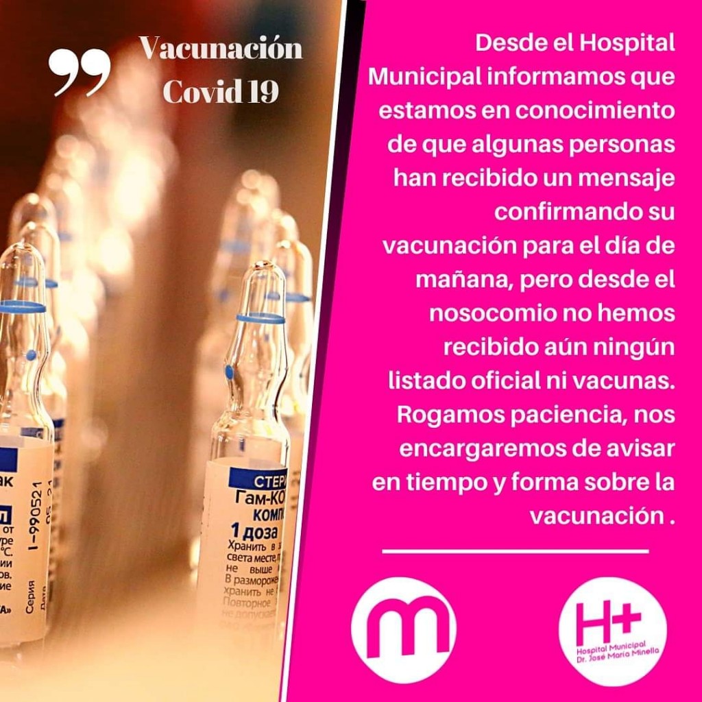 QUIENES TIENEN TURNO PARA VACUNARSE DESDE HOY DEBEN AGUARDAR EL LLAMADO DEL HOSPITAL