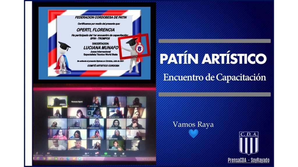 Tal es el caso de Florencia Operti, profesora y encargada de la escuela de patín del Raya de Monte Maíz quien el pasado día jueves 1 de julio estuvo participando del primer encuentro de capacitación: "Spin - Trompos". Esta capacitación fue disertada por Luciana Munafo, Jueza Internacional, Especialista Técnico World Skate y fue organizada por la Federación Cordobesa de Patín.