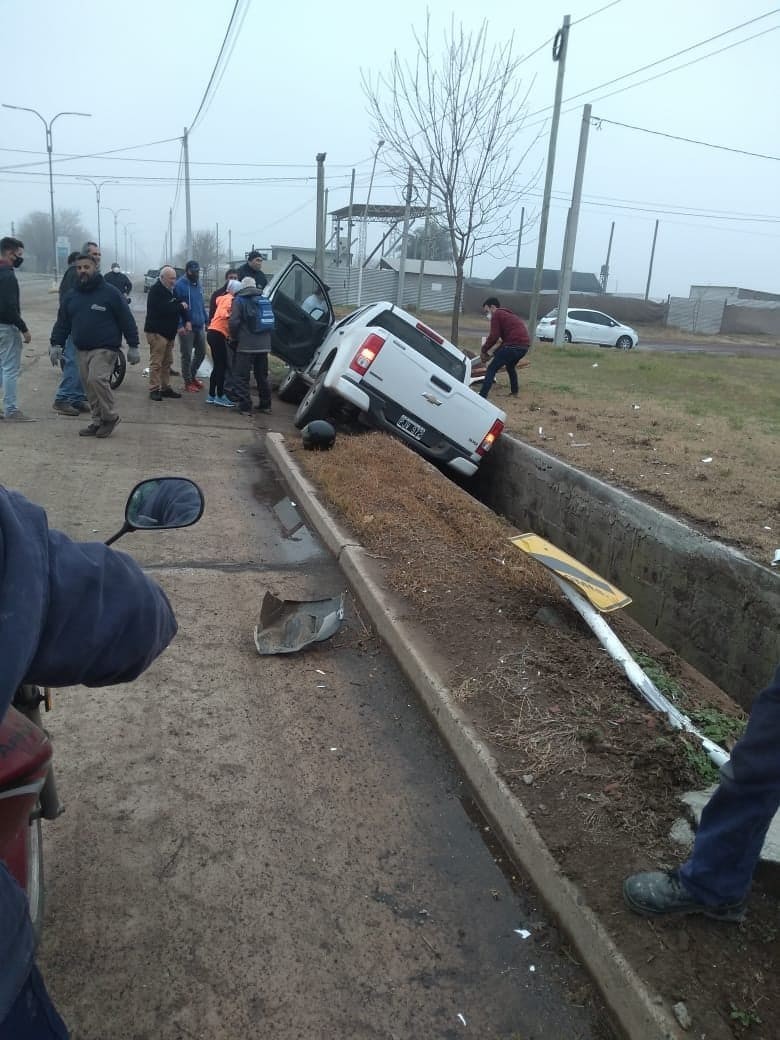 Por causas que se tratan de establecer, la conductora de una camioneta Marca Chevrolet, Dominio PJV 972, de color blanca, se salió de la carpeta asfáltica y cayó a la fosa de la banquina.
