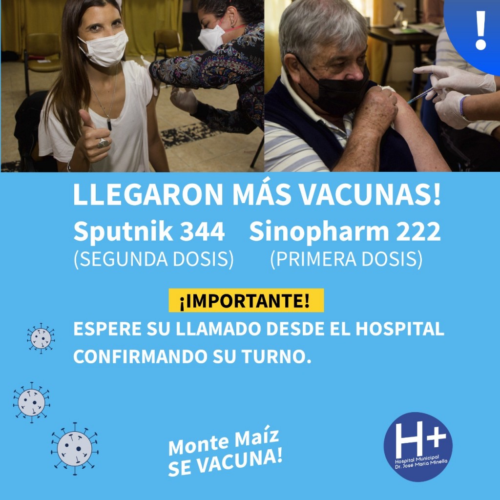 Es importante destacar que las personas que se deben vacunar recibirán el llamado desde el Hospital en donde se le informará el horario a cada persona para evitar aglomeraciones. Se ruega no llamar al Hospital para no congestionar las líneas y el proceso de comunicación de turnos sea mucho más ágil.