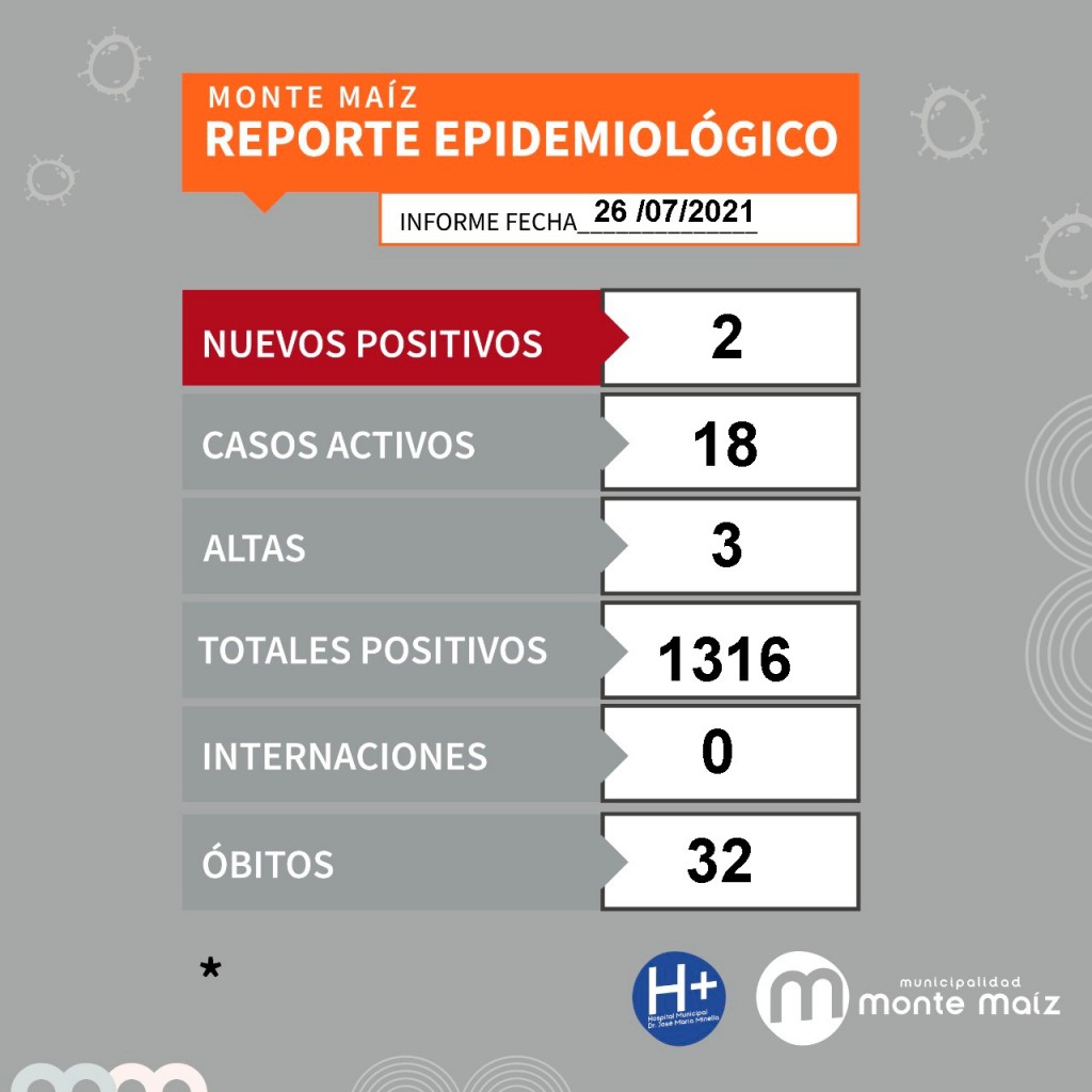 3 CASOS NUEVOS DE COVID-19 EN MONTE MAÍZ
