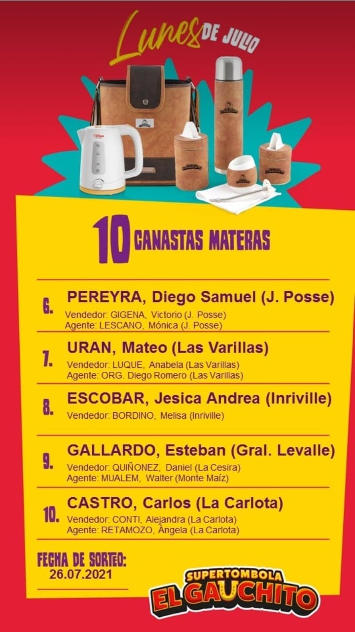 EL GAUCHITO: MÁS GANADORES DE LOS LUNES DE JULIO