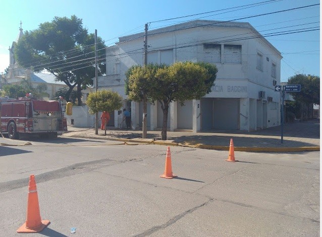 Al arribo de las fuerzas se constata el siniestro en Planta Alta de la Farmacia Baggini, sito en calle San Martín y esquina Sarmiento de la mencionada localidad. Cuando llegaron, Policias y Bomberos, el incendio se encontraba en pleno desarrollo en la Planta Alta de la vivienda.