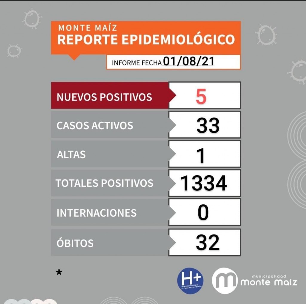 5 CASOS NUEVOS DE COVID-19 EN MONTE MAÍZ