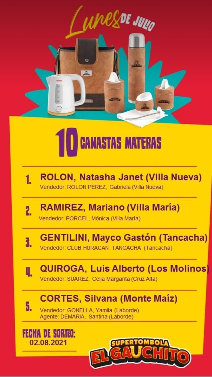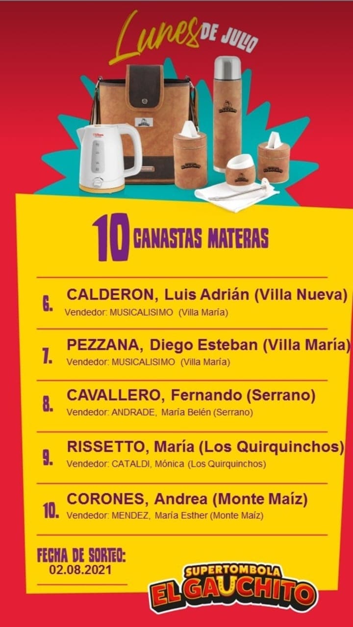 GAUCHITO: SORTEOS DE LOS LUNES DE AGOSTO