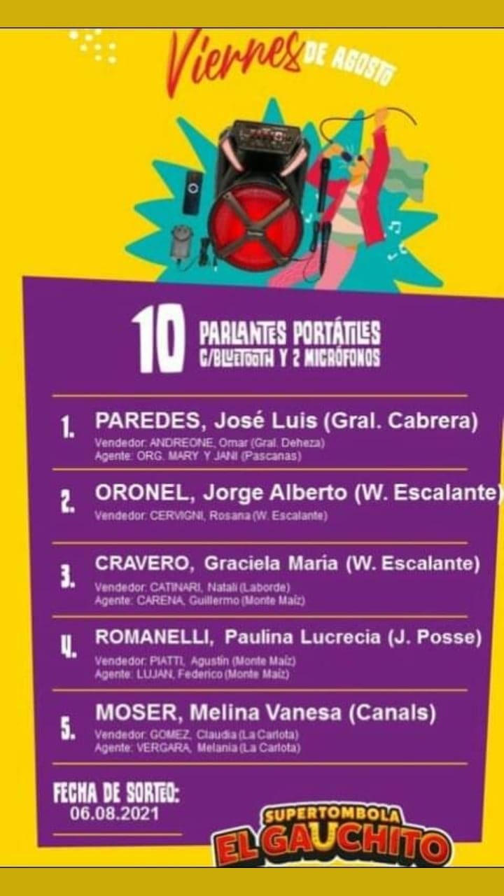 SORTEOS DE LOS VIERNES DE AGOSTO