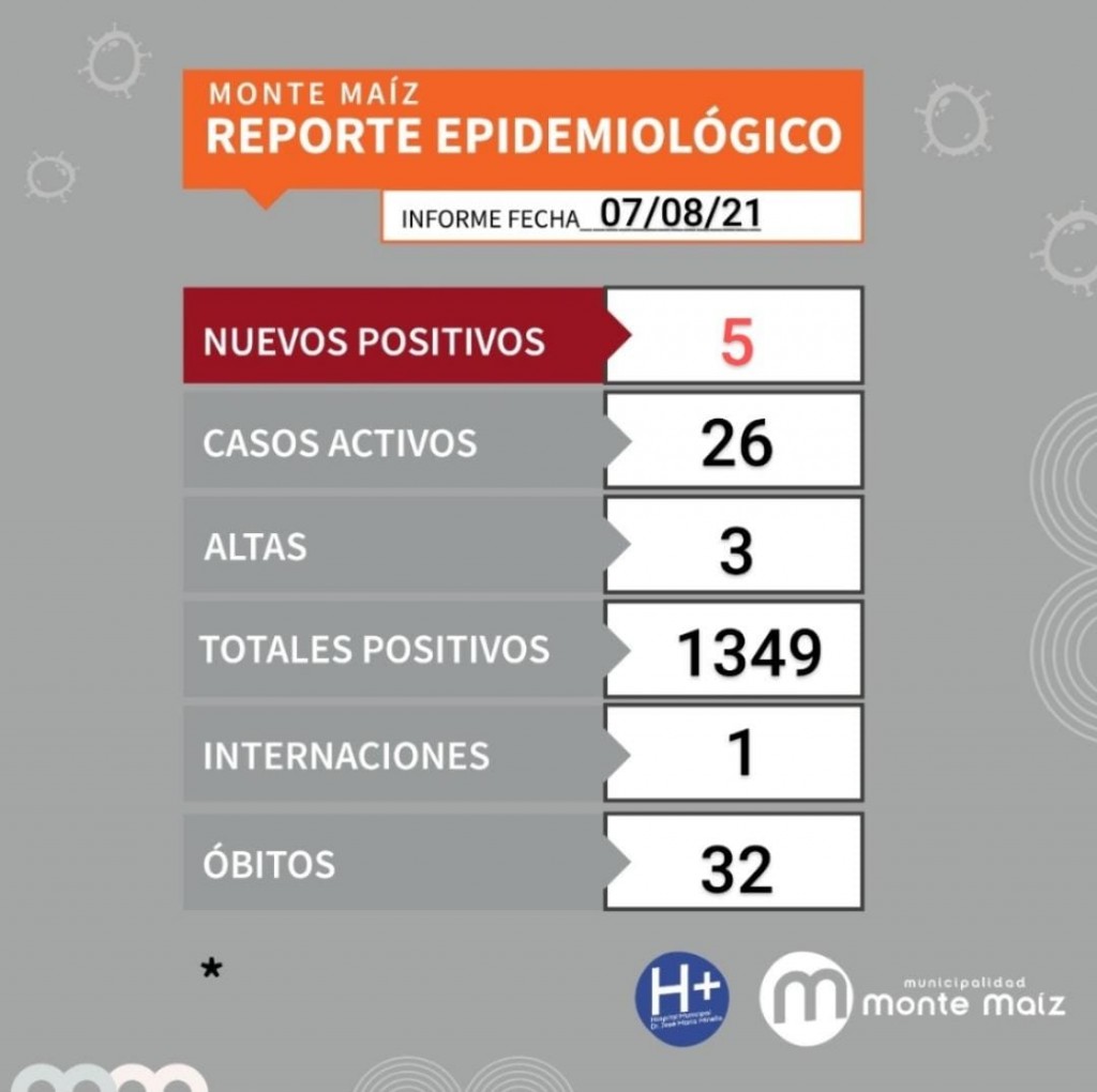 5 CASOS NUEVOS DE COVID-19 EN MONTE MAÍZ