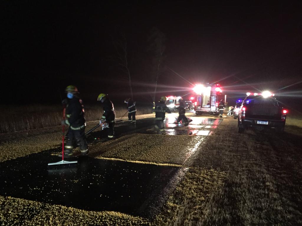 A esa hora había varios vehículos circulando por el lugar que se vieron demorados ya que la ruta fue liberada una hora y media después del accidente, cuando se consideró que se podía circular sin peligro por el sector. Trabajaron dos dotaciones de bomberos de Justiniano Posse y cuatro dotaciones de Monte Buey.