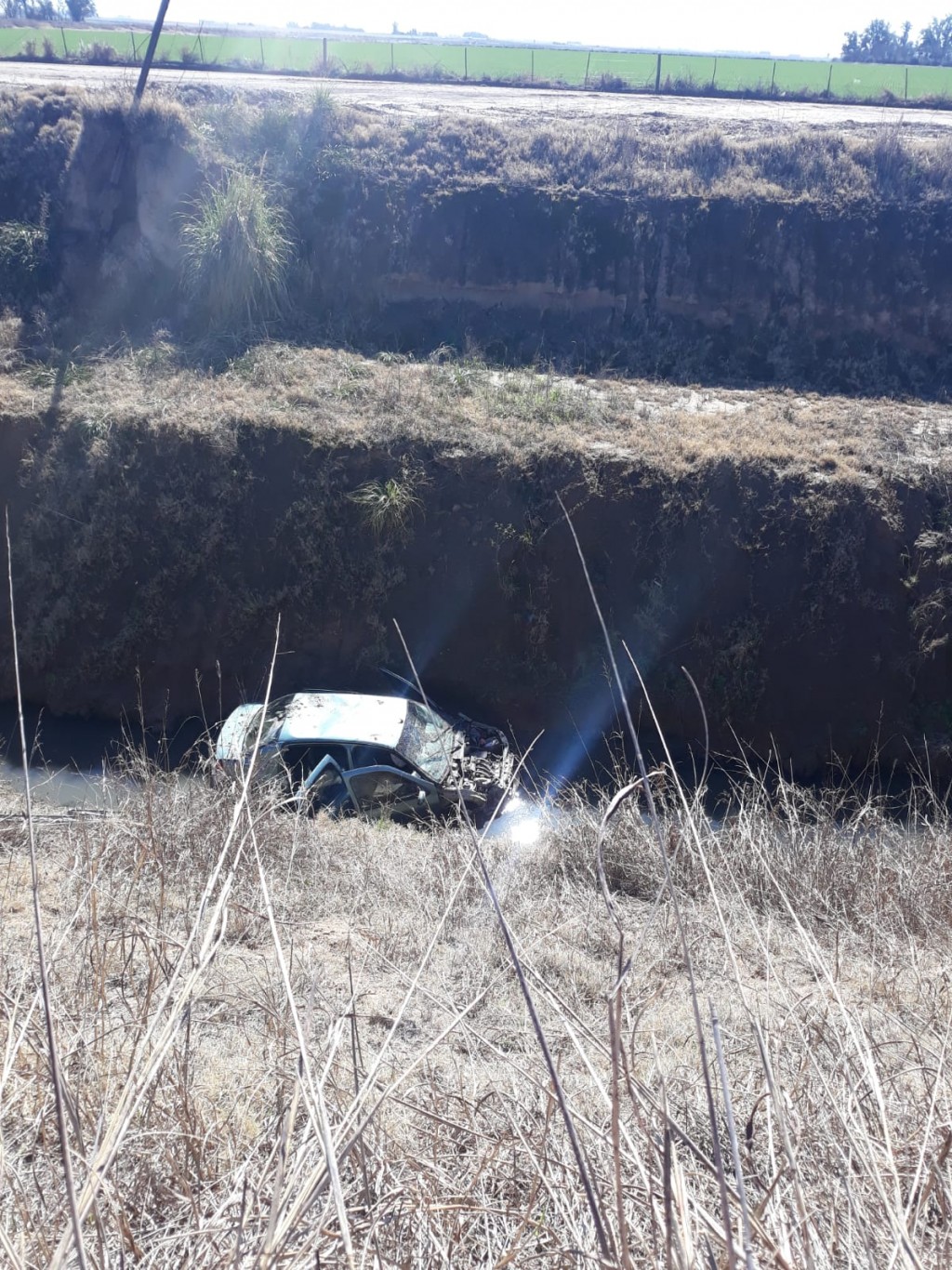 Al arribo del personal policial al lugar lograron observar un automóvil Renault Clío, volcado e invertido, con su conductor en el interior del vehículo, en el fondo del cunetón del desagüe maestro de Monte Maíz.