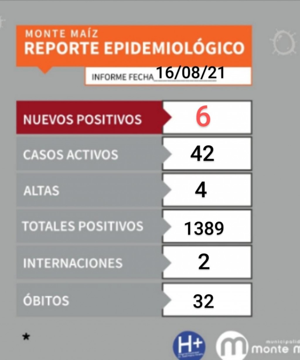 6 CASOS NUEVOS DE COVID-19 EN MONTE MAÍZ