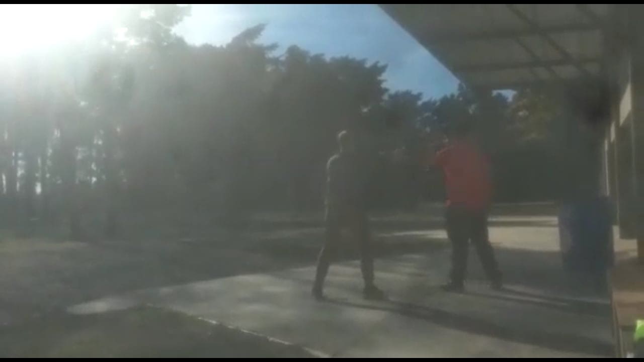 Uno de ellos parece decirle al otro que no quería llegar a tener que pegarle pero debió hacerlo por la provocación del otro. Aparentemente no había gente en la terminal en el momento de la pelea aunque un tercero se ocupó de filmarlos con el celular sin intervenir en la contienda.