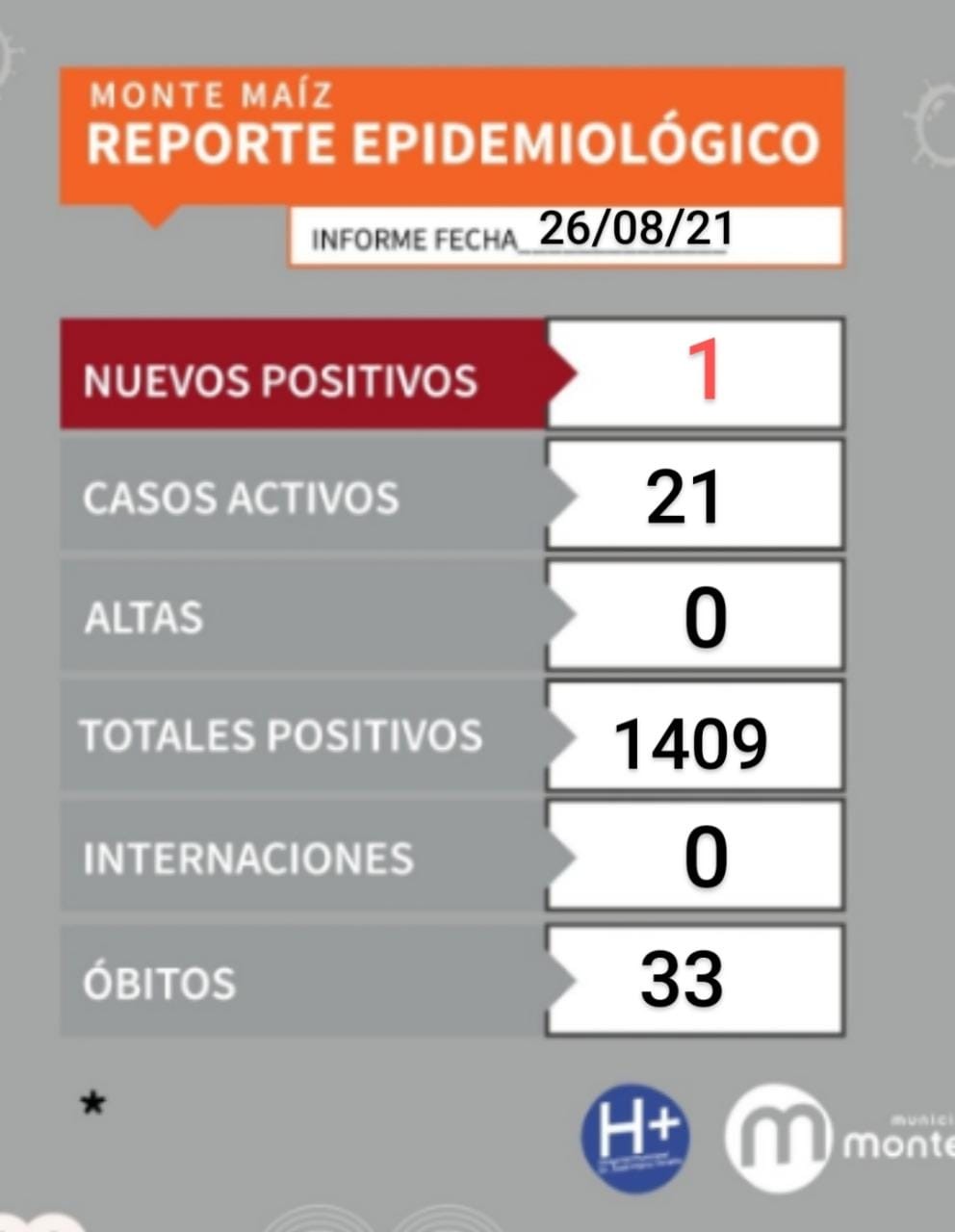 UN CASO NUEVO DE COVID-19 EN MONTE MAÍZ