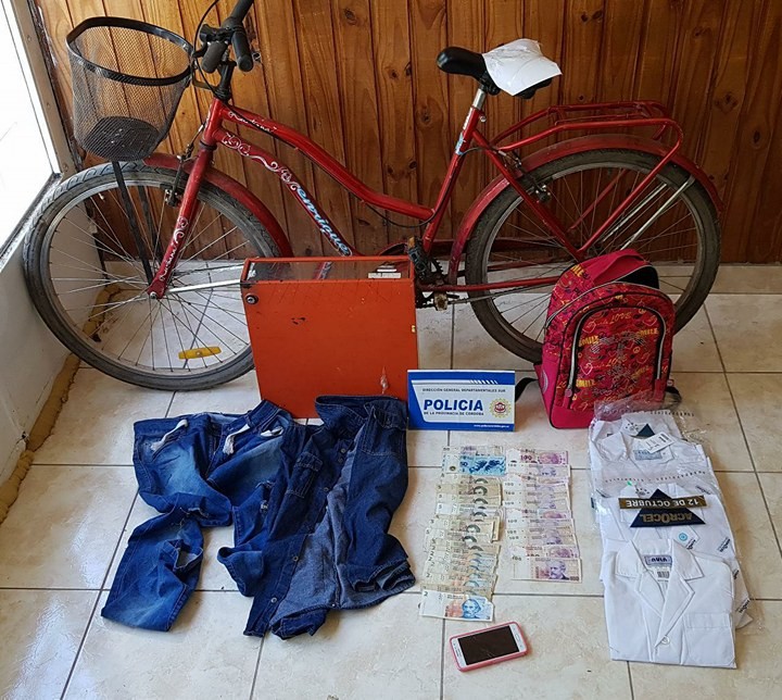 Luego de averiguaciones practicadas por Personal Policial de las que se desprende la sospecha de que el autor de los ilícitos sería el joven Maximiliano Villalba de 20 años de edad, a quien se lo encuentra en la vía pública, sin la mercadería faltante pero con vestimenta distinta a la que usaba al momento de cometer los delitos. Se lo trasladó a la Comisaría para su correcta identificación donde se constató que tiene domicilio en la ciudad de Santa Fe en calle Caferatta 8760 de B° Estanislao López. El muchacho presentaba idénticas características fisonómicas dadas por los testigos. Esto motivó que mediante Orden Judicial emanada por la Jueza de Paz, se procediera a allanar el domicilio del Sr. José Duarte de calle La Pampa al 1256 de la localidad de Monte Maíz. Procedimiento que arrojó resultados “Positivos”. Allí se procedió al secuestro de un teléfono celular marca Samsung, modelo Grand Prime de color blanco con funda rosa. También se secuestró una mochila de color rosa, una bicicleta de dama con canasto de color rojo y la suma de $1.300 en efectivo.
