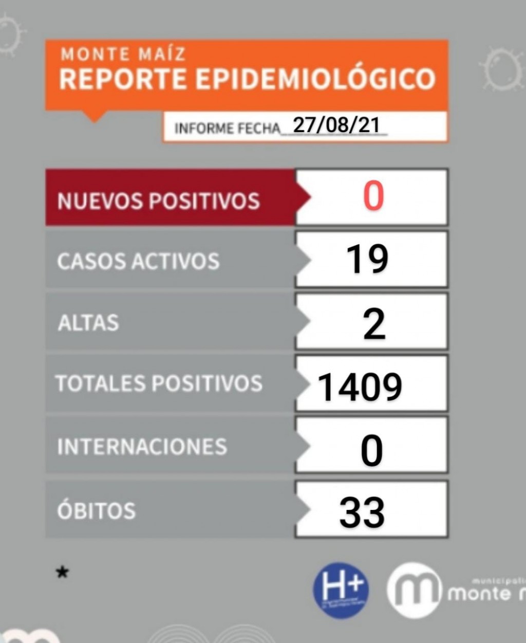 El informe epidemiológico local indicó que no hubo contagios nuevos en las últimas 24 horas en Monte Maíz y que se dieron 2 atas médicas a pacientes que estaban cumpliendo con el aislamiento domiciliario.