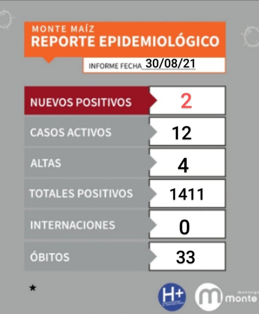 El informe epidemiológico local confirmó 2 casos nuevos de COVID-19 en Monte Maíz y 4 altas médicas a pacientes que cumplían con el aislamiento domiciliario.