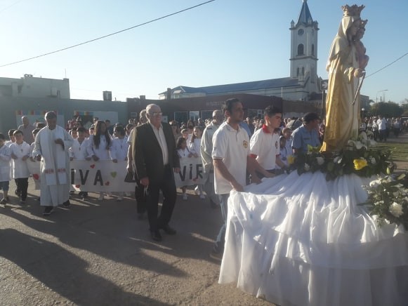 18:00 hs. Santa Misa frente al Templo parroquial y Procesión por las calles del pueblo.