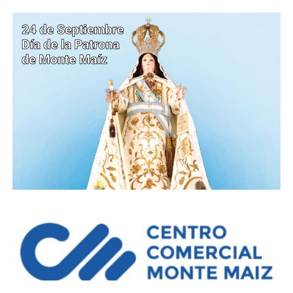 El Centro Comercial Monte Maíz informa que con motivo de los festejos litúrgicos, el viernes 24 de Septiembre el municipio lo declaró como día no laborable, para bancos, administración pública y afines.