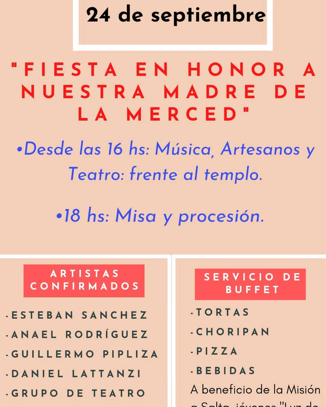 Anterior a ello habrá una jornada de música y teatro desde las 16 hs. con artistas locales también frente a la Parroquia.