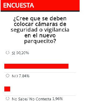 La mayoría de nuestros lectores, participantes de la encuesta que planteaba la necesidad de colocar cámaras o seguridad en el nuevo parquecito, opinó que que es necesario para mantener el buen estado del mismo.