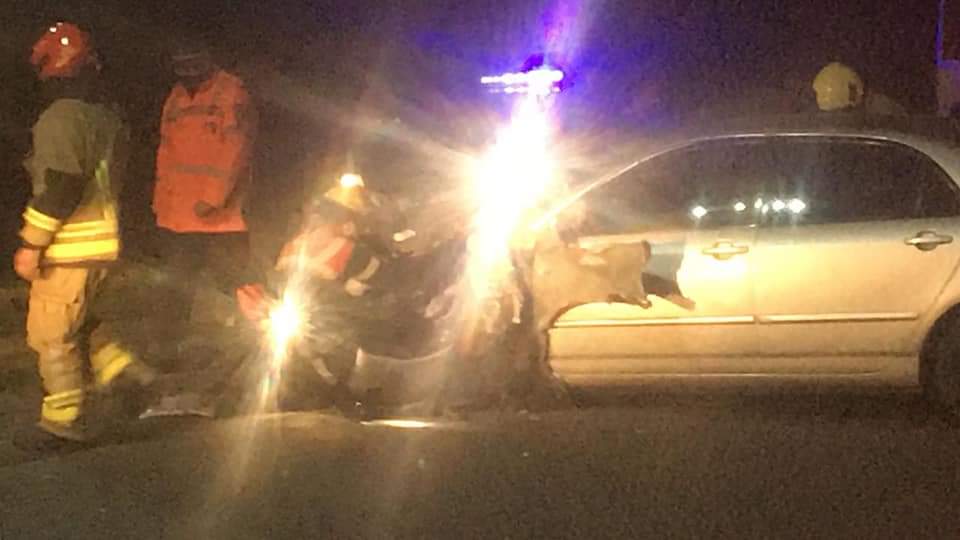 Tránsito cortado porque el automóvil quedó cruzado sobre la calzada, hubo heridos, uno de ellos atrapado en el auto. Los tres ocupantes del auto son oriundos de Camilo Aldao y los dos ocupantes de la camioneta son de Colonia Progreso.