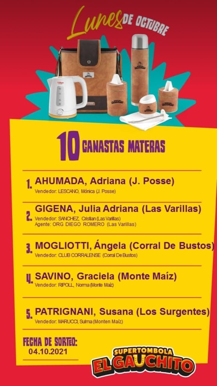 SORTEOS DE LOS LUNES DE OCTUBRE