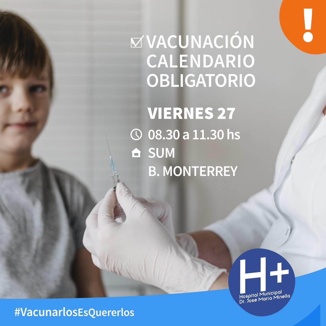 El Hospital Municipal de Monte Maíz informa a la población que el martes 12 de octubre habrá vacunación del calendario obligatorio en el SUM (Salón de Usos Múltiples), Madre teresa de Calcuta, de Barrio Monterrey de 14:30 a 18:30 hs.